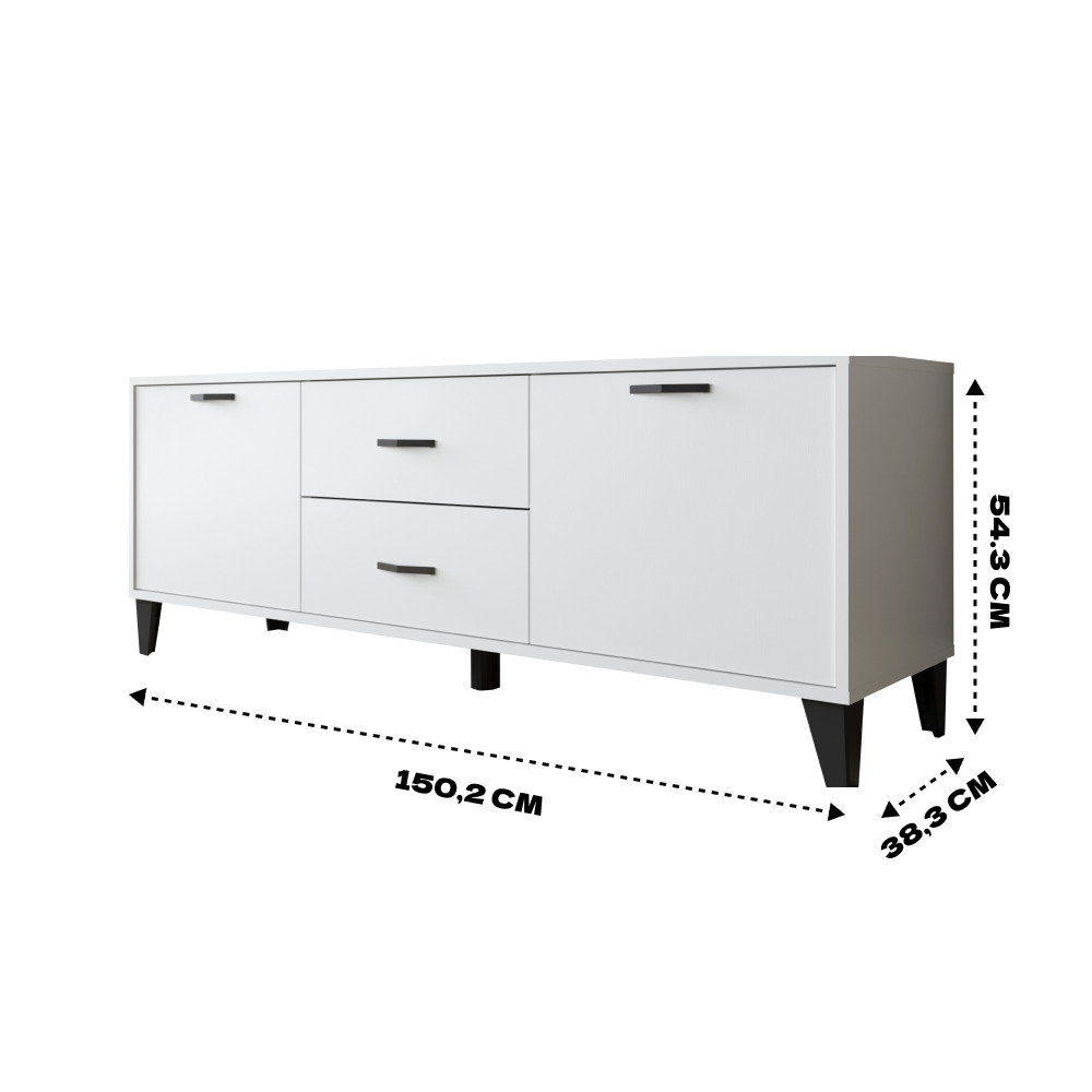 Тумба позволяет хранить различные аксессуары, кабели, документы внутри ящиков и за дверками, что помогает сохранять визуальную чистоту и порядок в гостиной комнате.