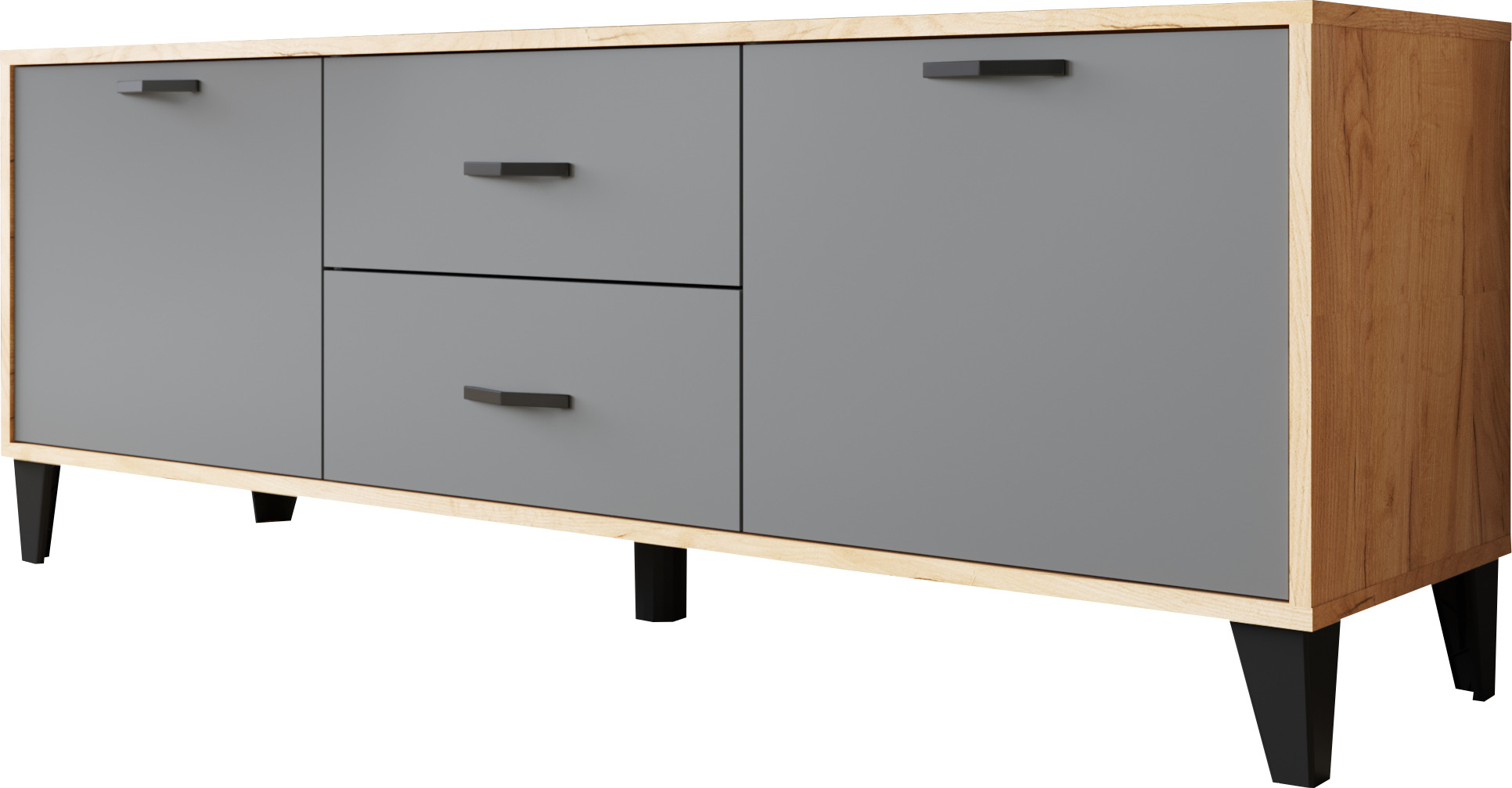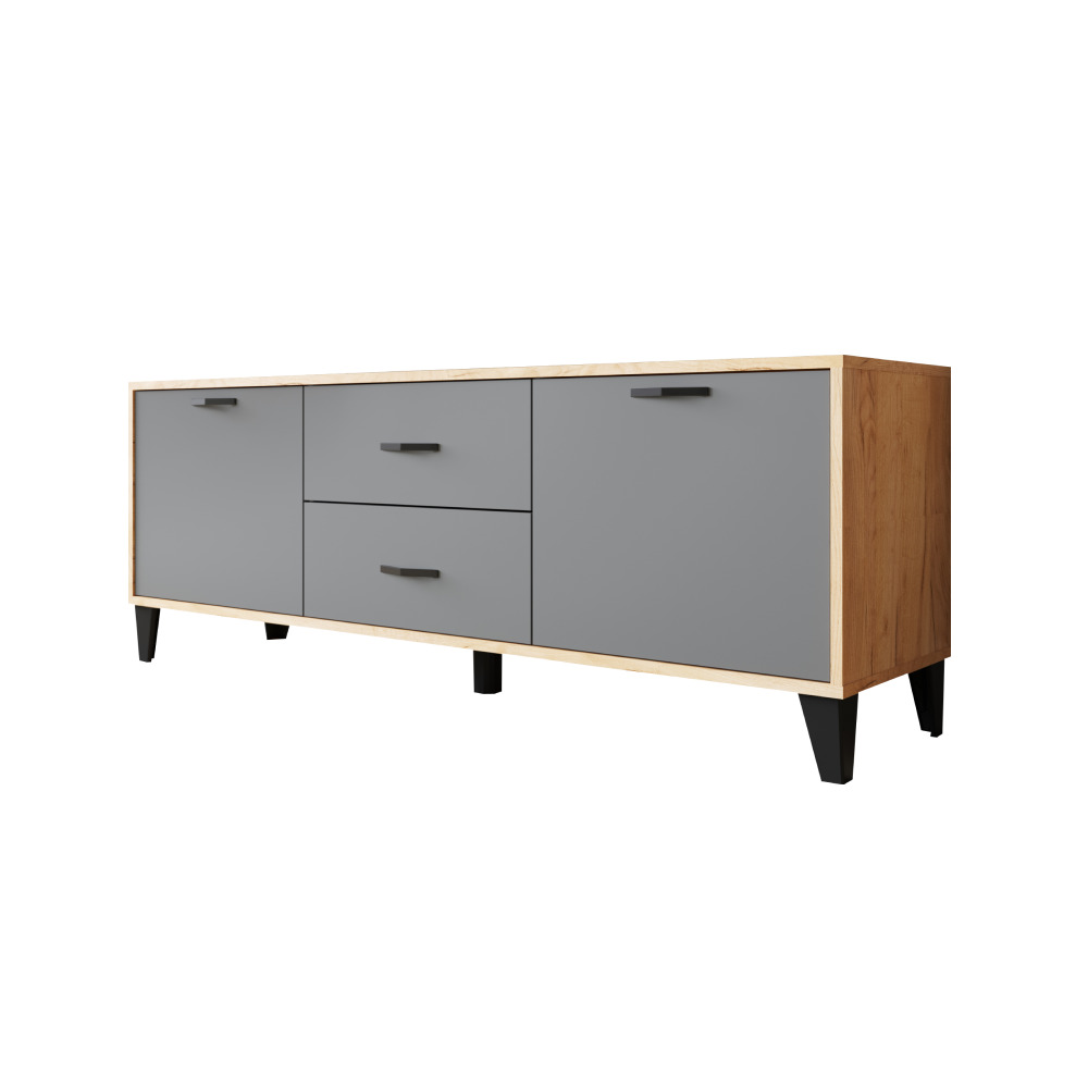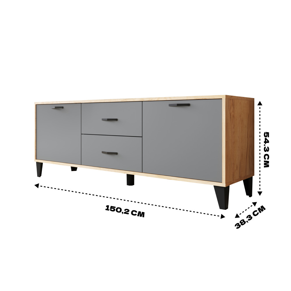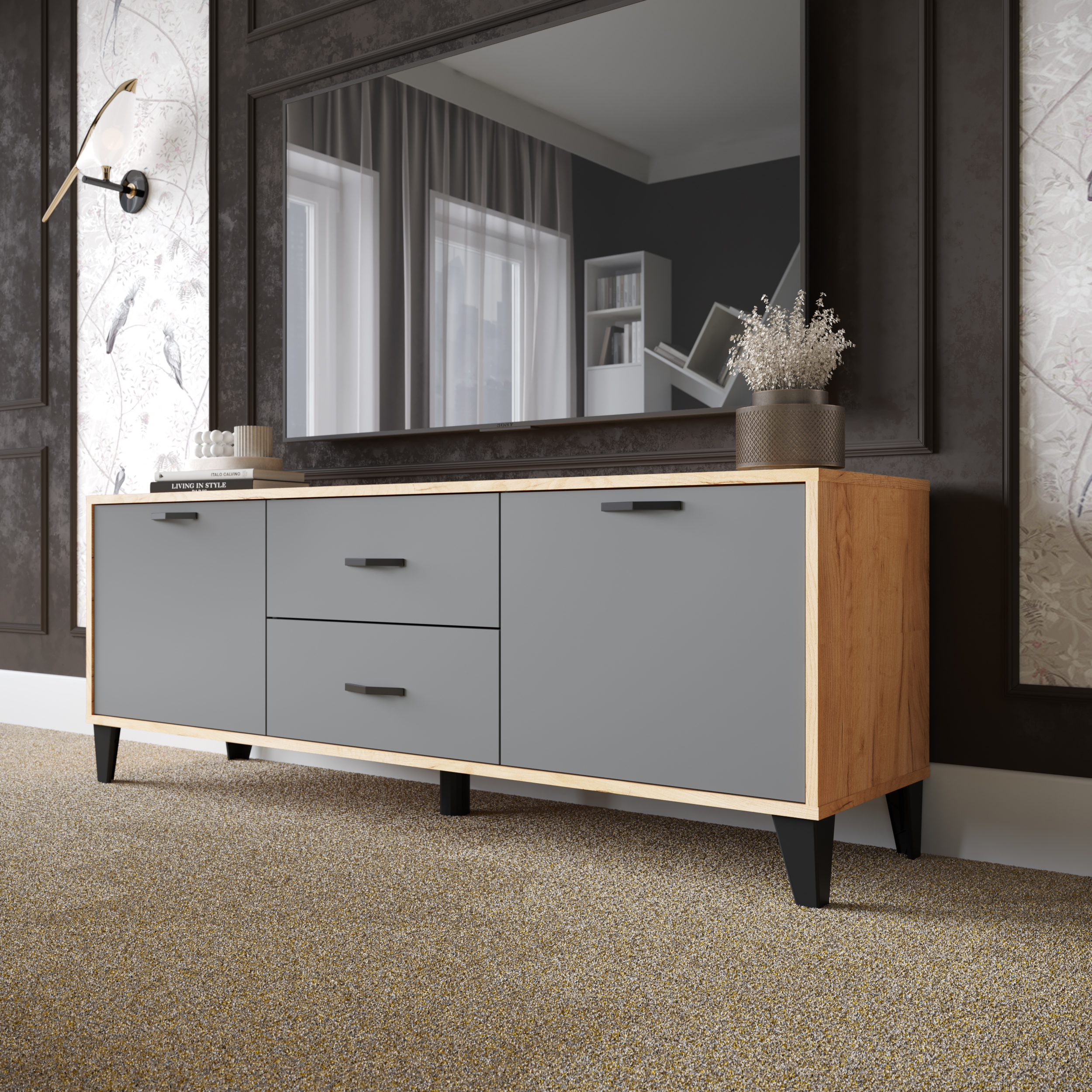 Тумба позволяет хранить различные аксессуары, кабели, документы внутри ящиков и за дверками, что помогает сохранять визуальную чистоту и порядок в гостиной комнате.