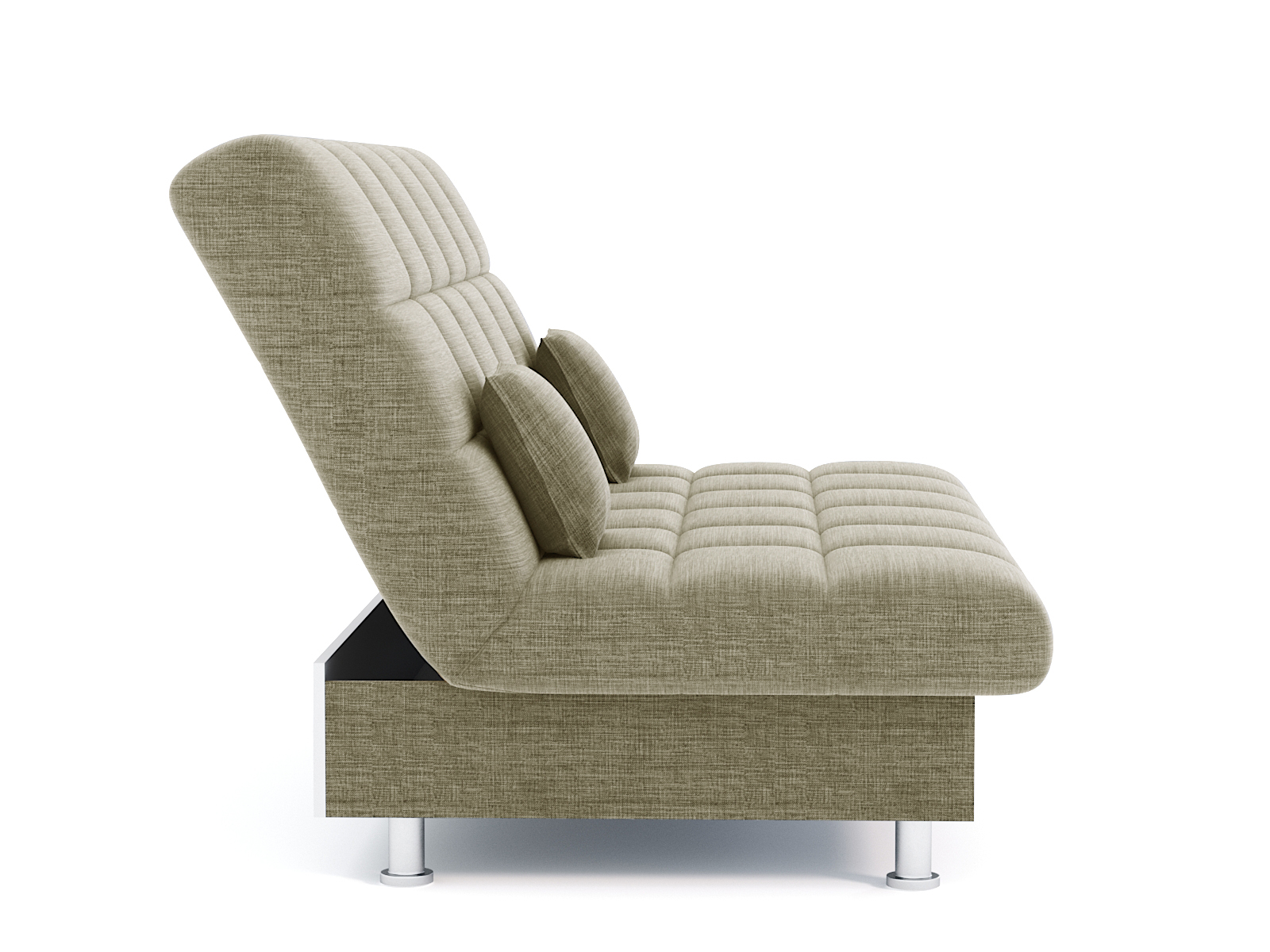 Механизм трансформации книжка. Каркас металлический. Наполнение высокоэластичный ППУ. Жёсткость средняя. Ящика для белья есть. Наполнение подушек-крошка ППУ, чехлы подушек несъёмные. Высота сиденья от пола 400мм. Глубина сиденья без подушек 600мм. В комплекте 2 декоративные подушки.