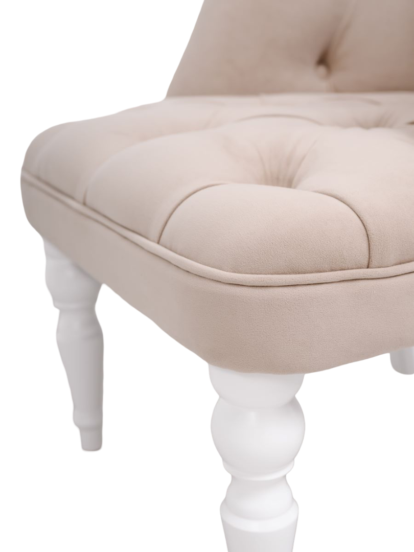 Шикарное кресло с каретной стяжкой прекрасно впишется как в классический, так и современный интерьер. Кресло изящно будет выглядеть в разных помещениях и станет ярким атрибутом, украсив ваш туалетный столик.
