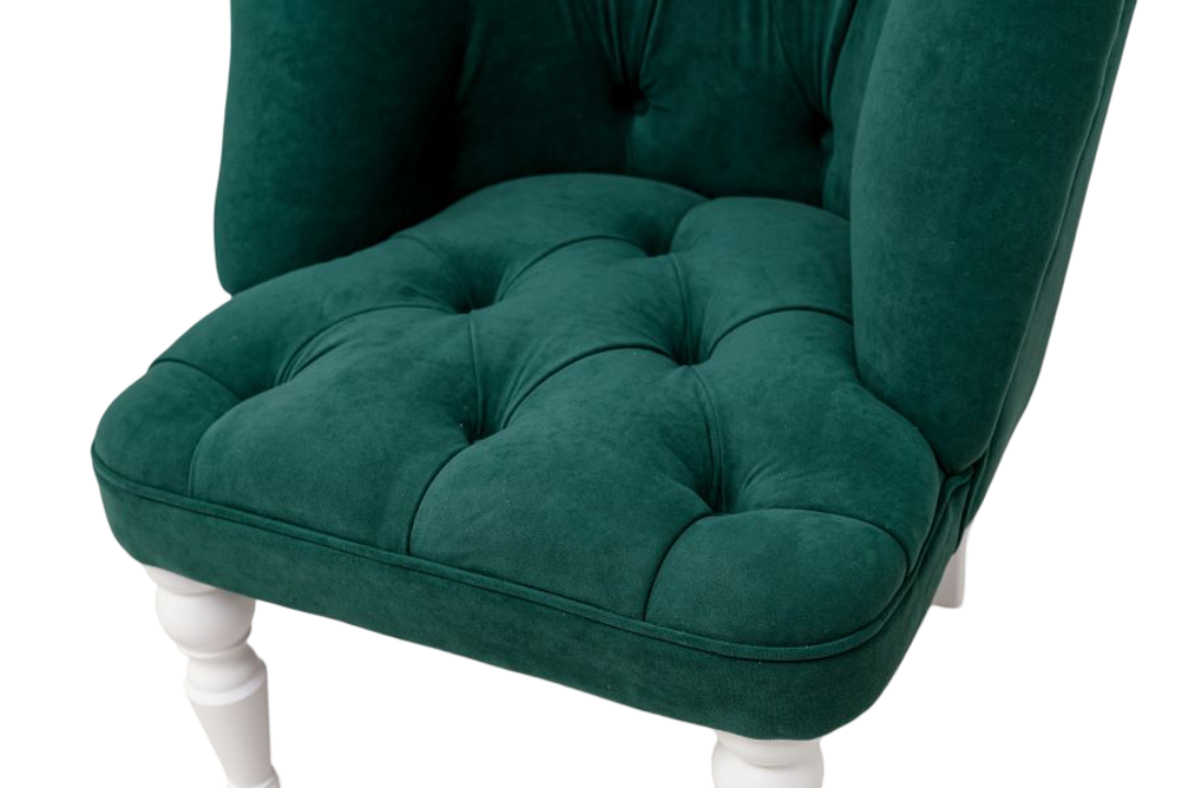 Шикарное кресло с каретной стяжкой прекрасно впишется как в классический, так и современный интерьер. Кресло изящно будет выглядеть в разных помещениях и станет ярким атрибутом, украсив ваш туалетный столик.