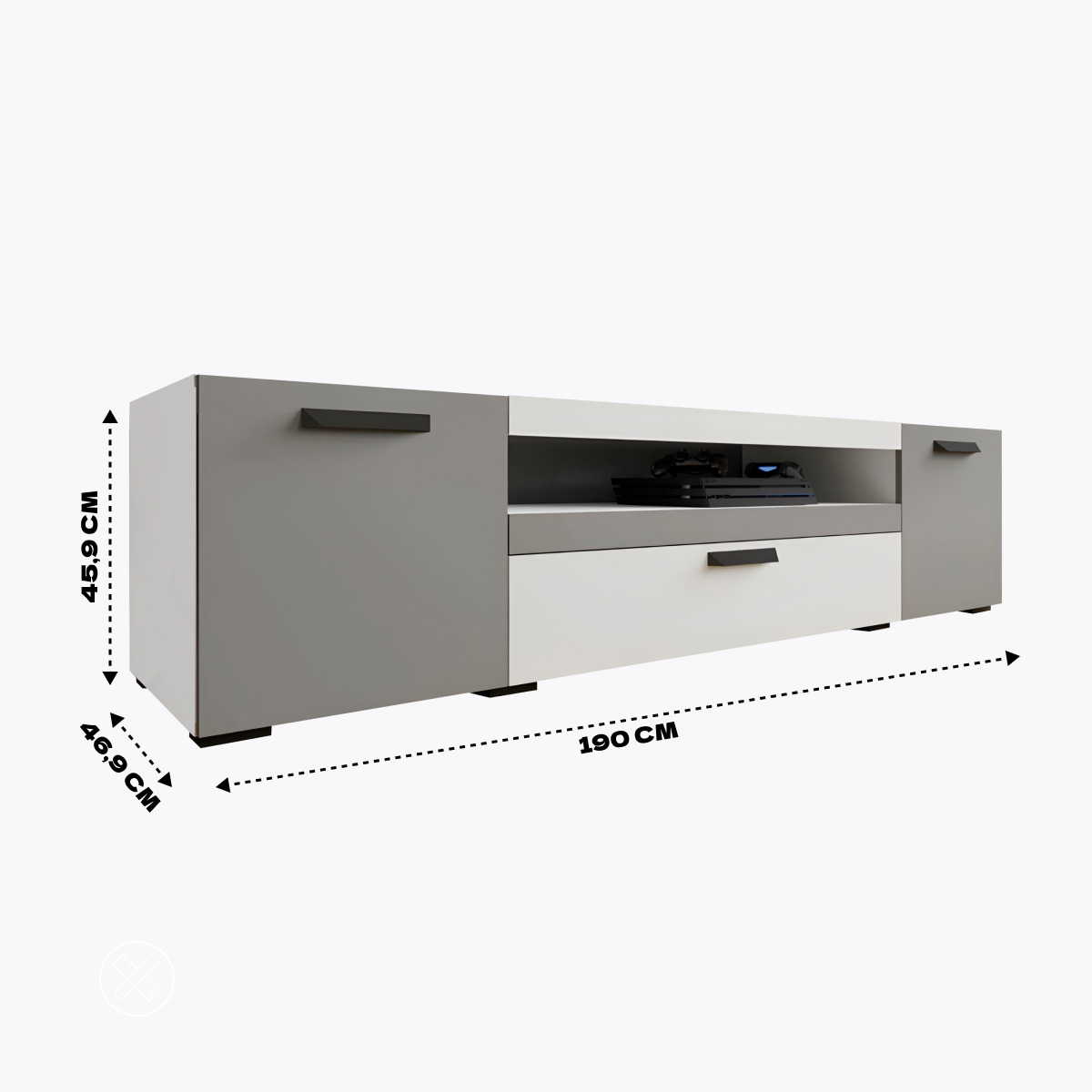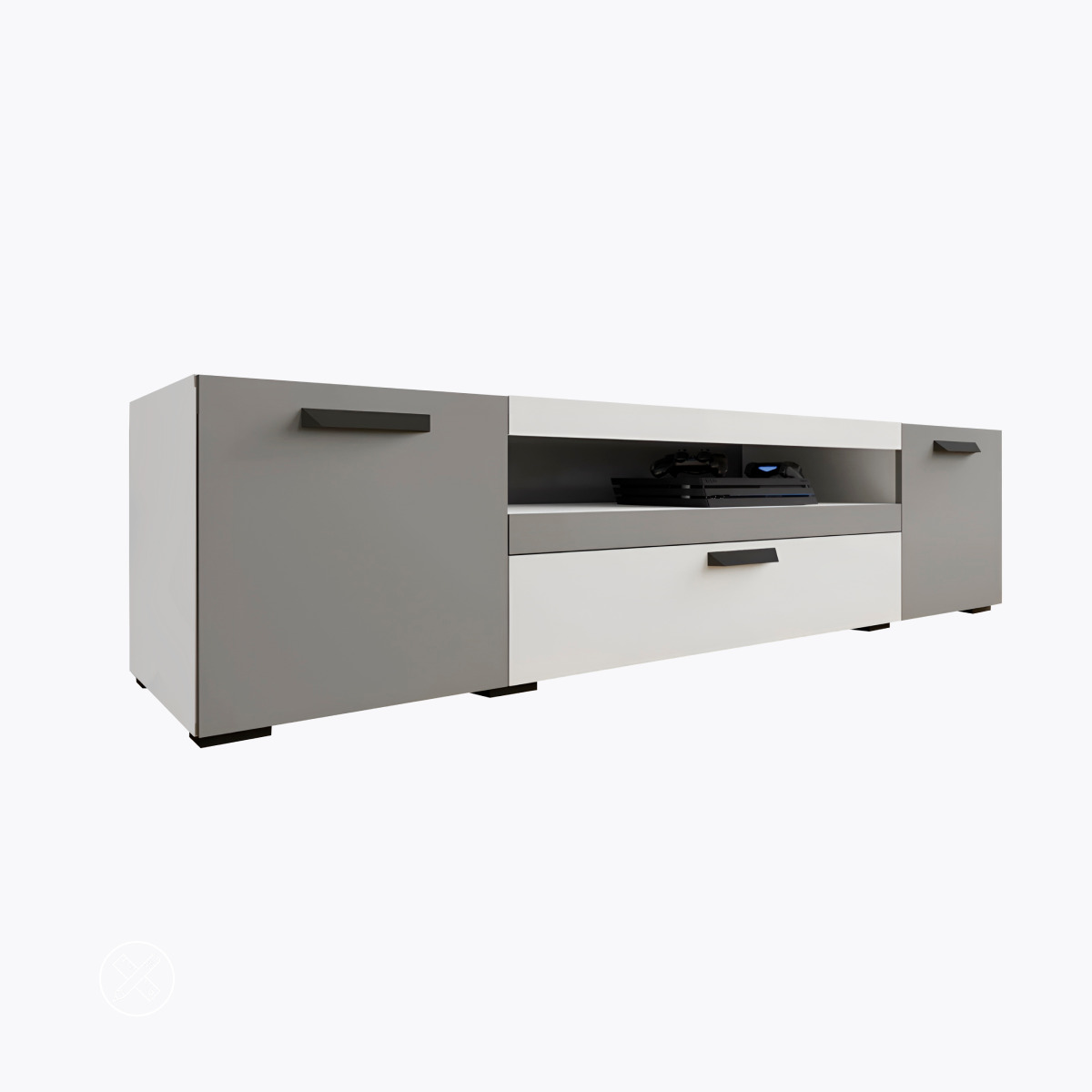 Тумба ТВМ-8 предоставляет не только площадку для размещения вашего телевизора, но также оборудована ящиком и полками, что делает ее отличным выбором для хранения различных мультимедийных устройств, дисков, пультов дистанционного управления и других предметов. Изготовленная из качественного ЛДСП с тиснением «Древесные поры» от «Kronospan», тумба имеет кромку 0,4 мм.