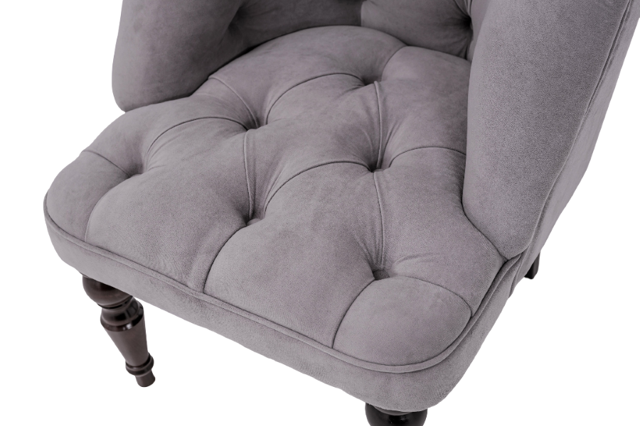 Шикарное кресло с каретной стяжкой прекрасно впишется как в классический, так и современный интерьер. Кресло изящно будет выглядеть в разных помещениях и станет ярким атрибутом, украсив ваш туалетный столик.