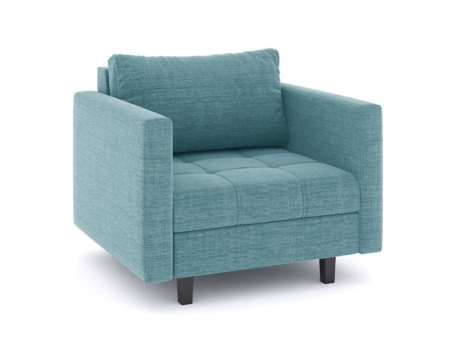 Кресло для отдыха. Каркас ДСП, ДВП, ЛДСП, фанера, брус хвойных пород. Наполнение высокоэластичный ППУ. Наполнение подушки-крошка ППУ. Высота сиденья от пола 430мм. Глубина сиденья без подушки 720мм. Опора массив березы, высота опоры 150мм.