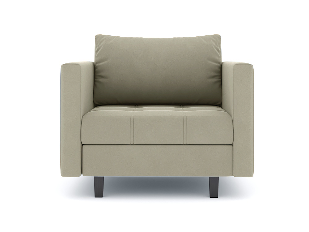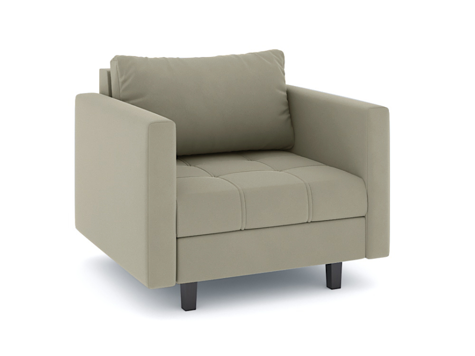 Кресло для отдыха. Каркас ДСП, ДВП, ЛДСП, фанера, брус хвойных пород. Наполнение высокоэластичный ППУ. Наполнение подушки-крошка ППУ. Высота сиденья от пола 430мм. Глубина сиденья без подушки 720мм. Опора массив березы, высота опоры 150мм.