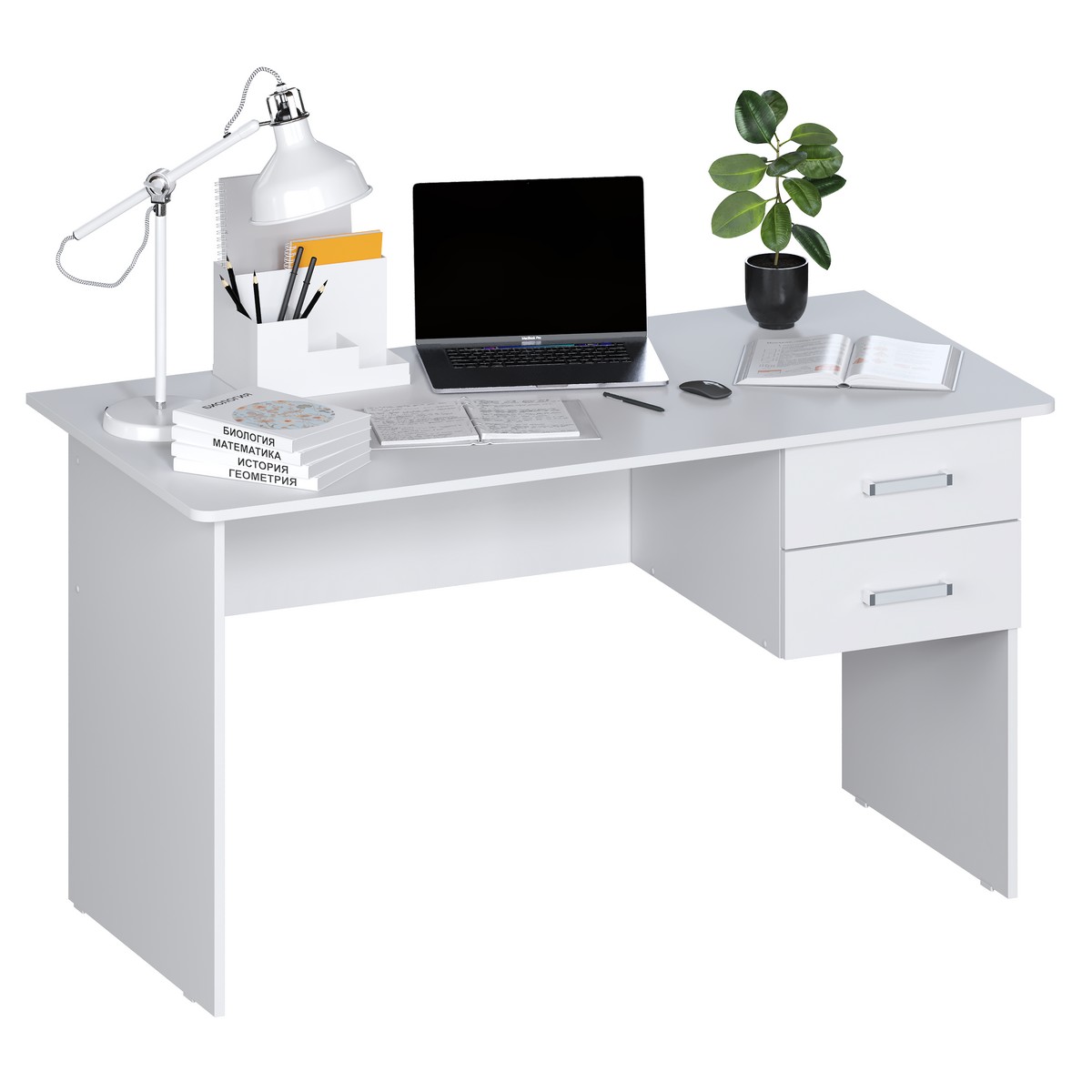 Широкий письменный стол с просторной рабочей зоной 140х68 см. Конструкция с двумя выдвижными ящиками, расположение ящиков справа. Столешница со скруглёнными углами, что повышает травмобезопасность. Кромка переднего края столешницы толщиной 2 мм для комфортной работы за столом. Такой стол отлично подойдёт как для дома так и для офиса. Изготовлен из ЛДСП 16 мм, цвет Дуб сонома/Белый гладкий. Поставляется в разобранном виде.