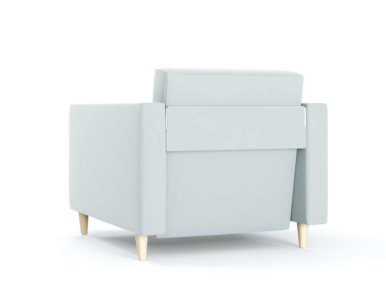 Кресло-кровать для отдыха. Каркас ДСП, ДВП, ЛДСП, фанера, брус хвойных пород. Спасльное место 1900х610. Наполнение высокоэластичный ППУ. Наполнение подушки-крошка ППУ. Высота сиденья от пола 440мм. Глубина сиденья 580мм. Опора массив березы, высота опоры 100мм.