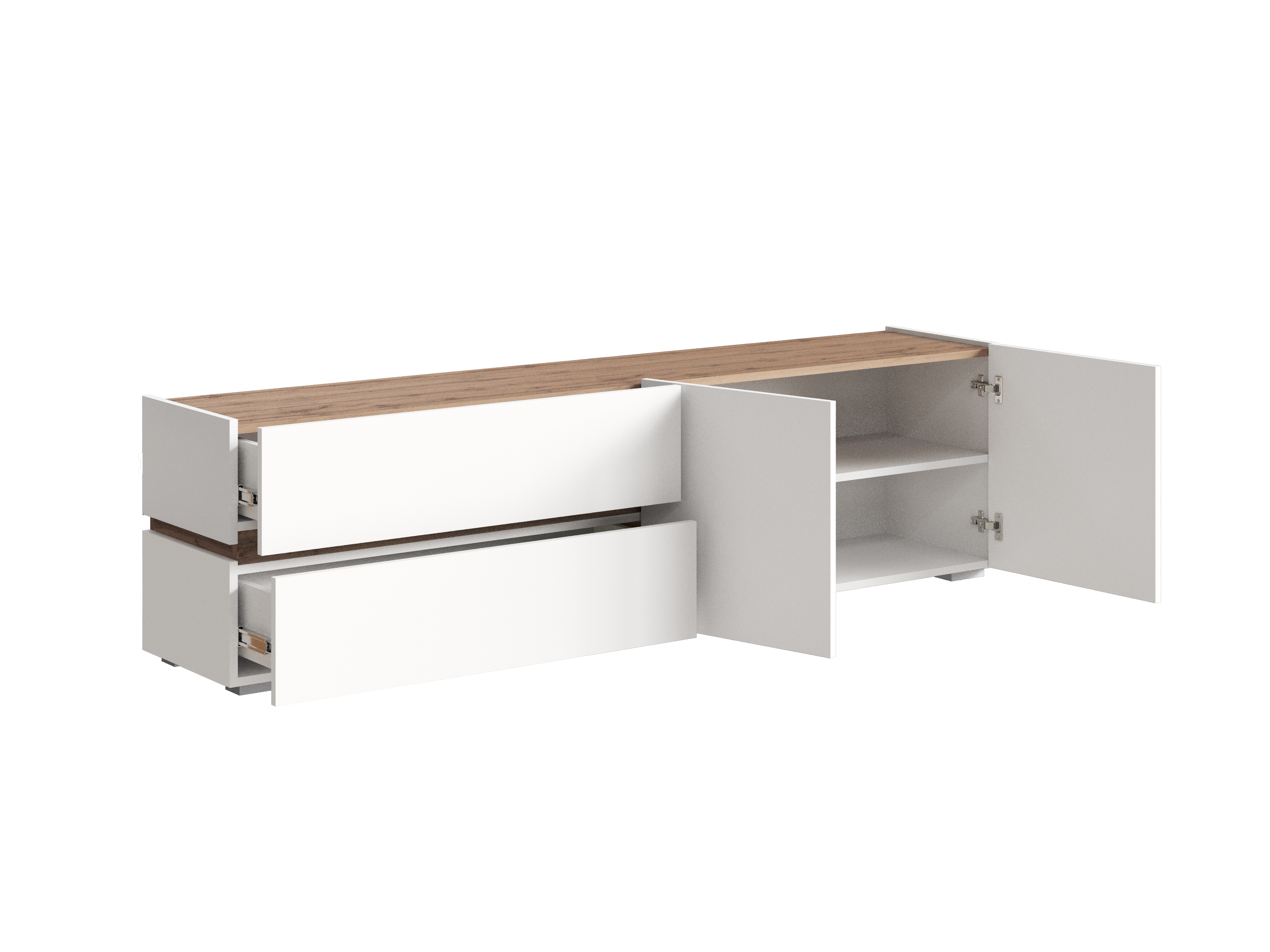 Тумба состоит из 2-х створок и 2-х выдвижных ящиков.