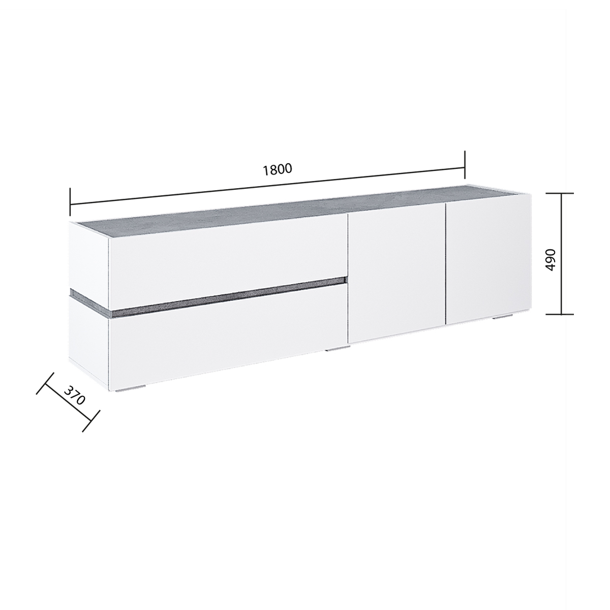 Размер тумбы: 1800х490х370 (ШхВхГ).