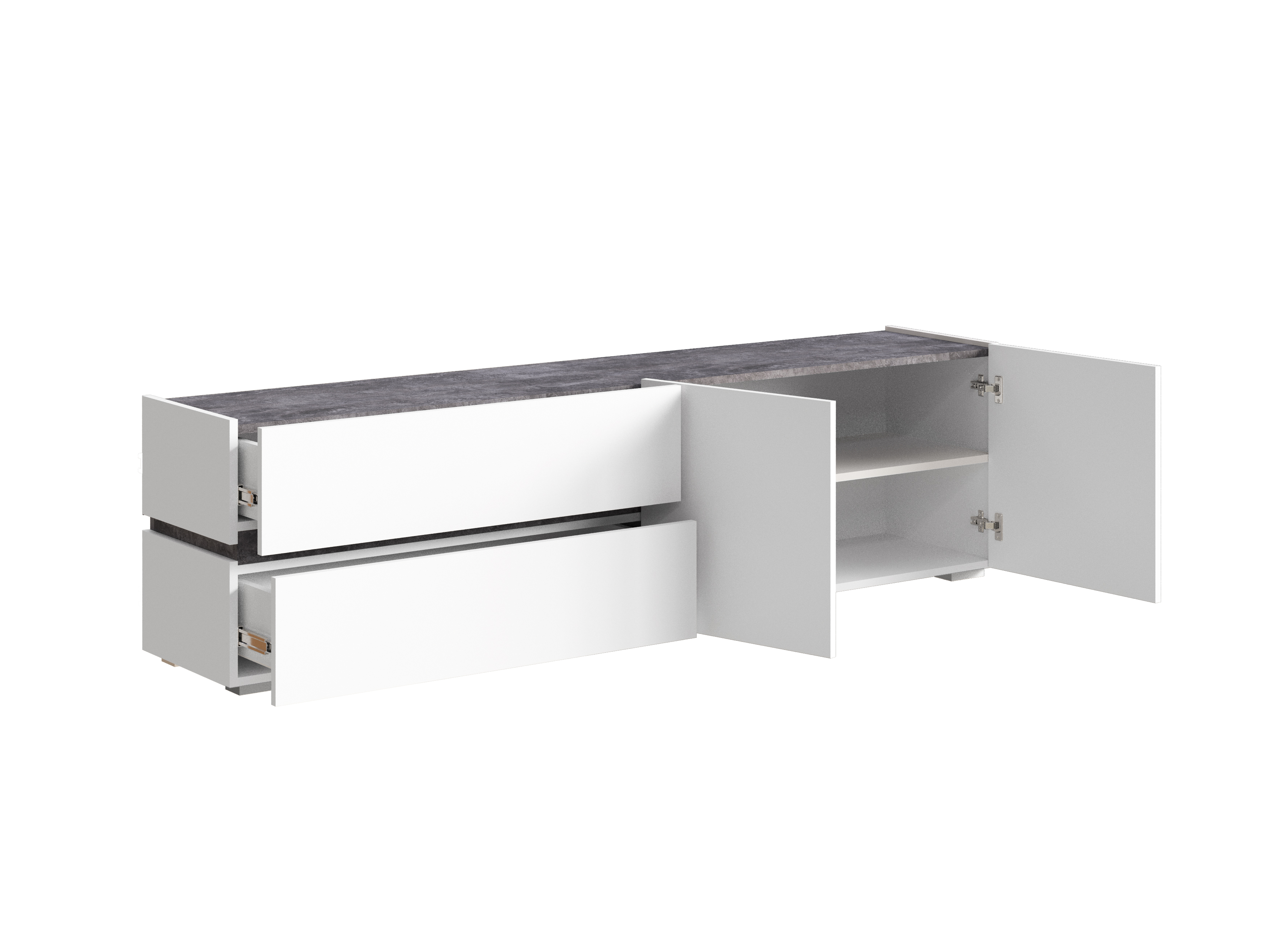 Тумба состоит из 2-х створок и 2-х выдвижных ящиков.