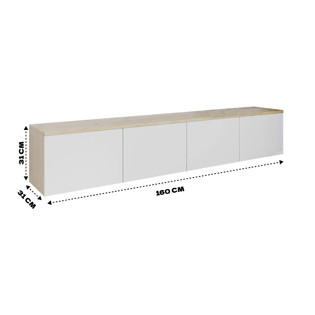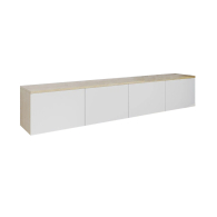 Подвесная тумба с двумя выдвижными ящиками на шариковых направляющих (полного выдвижения)-посередине, двумя дверками(по краям) и скрытым навесом.