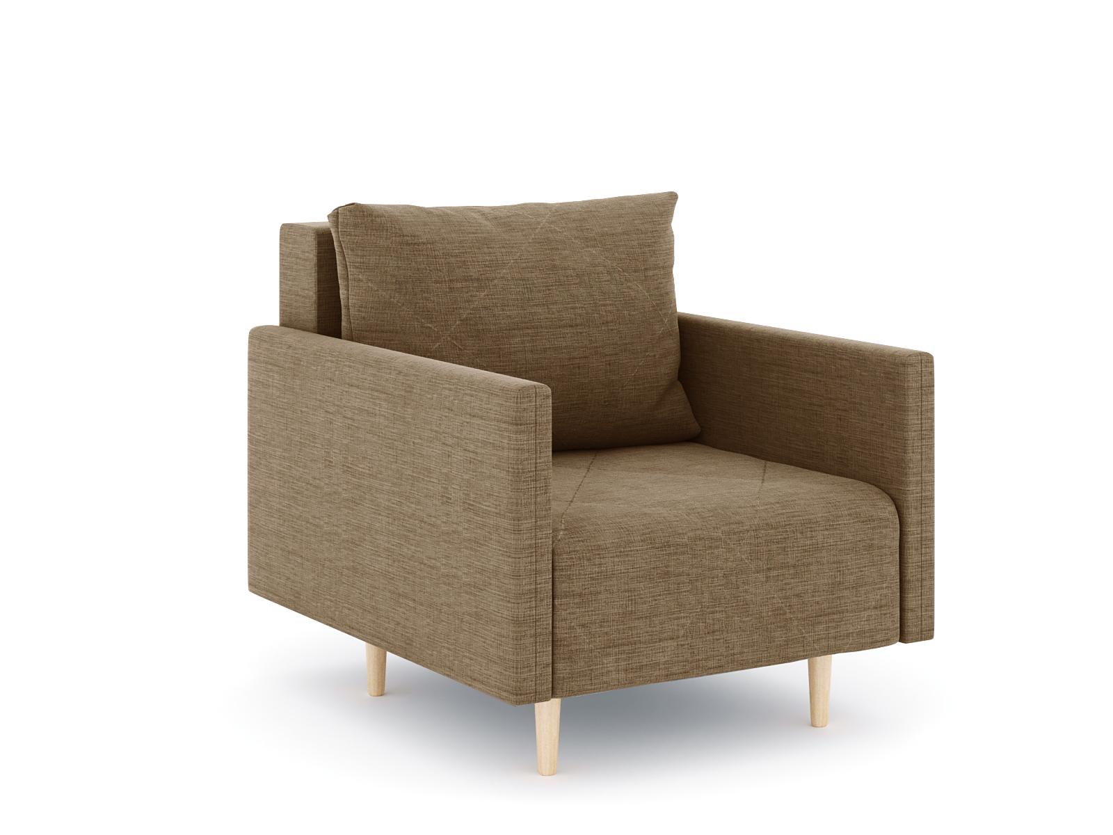 Кресло для отдыха. Каркас ДСП, ДВП, ЛДСП, фанера, брус хвойных пород. Наполнение высокоэластичный ППУ. Наполнение подушки-крошка ППУ. Высота сиденья от пола 450мм. Глубина сиденья без подушки 760мм. Опора массив березы, высота опоры 150мм.