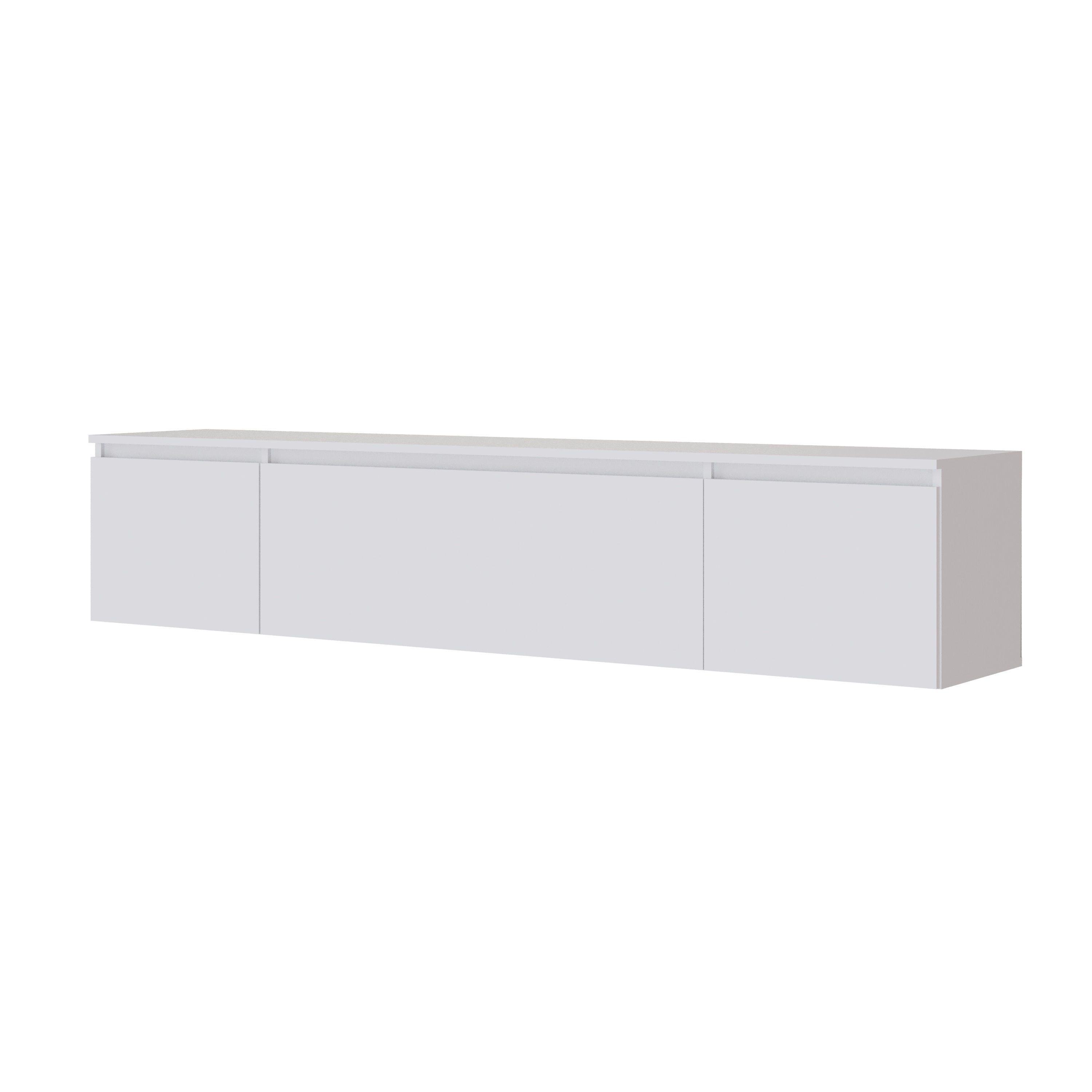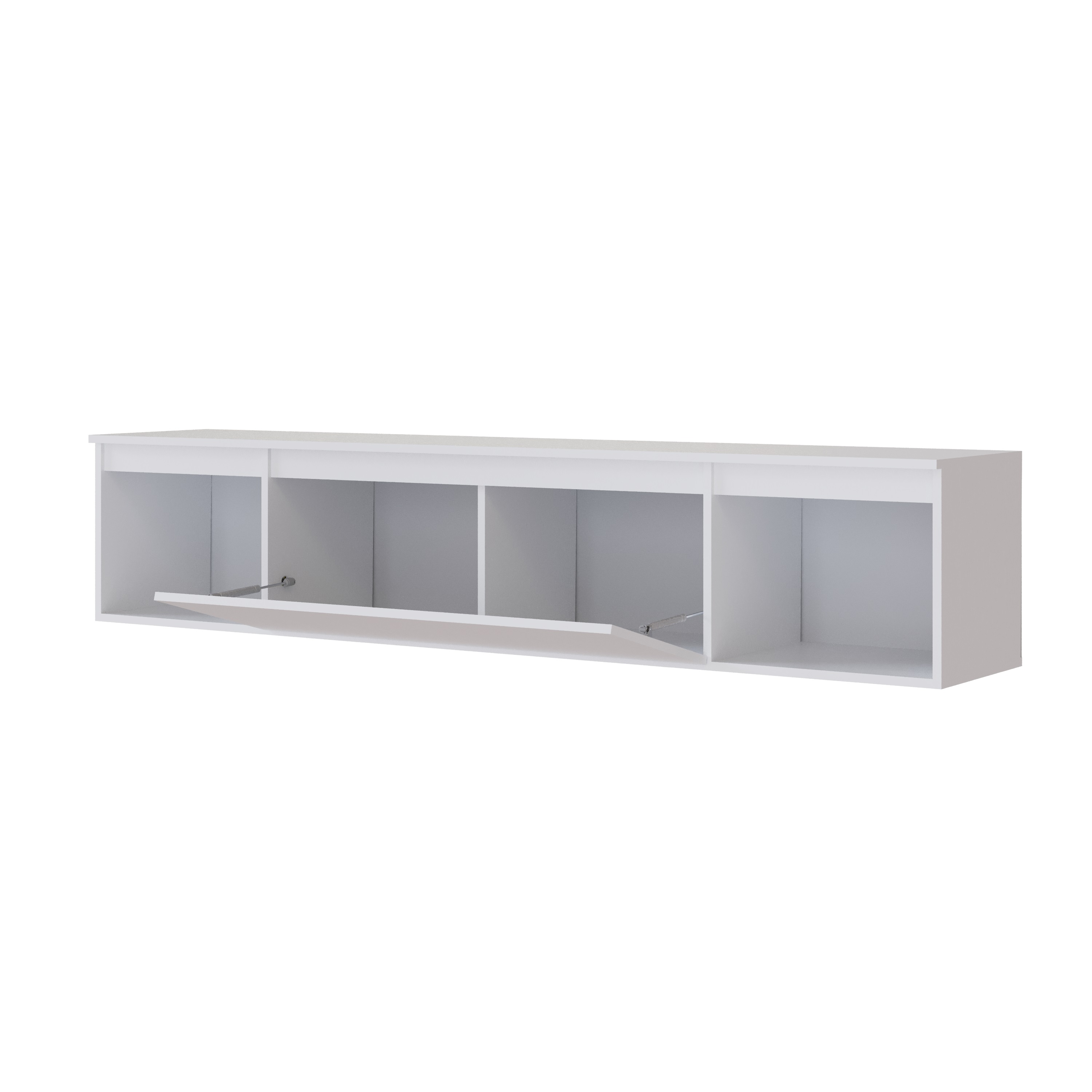 Тумба-ТВ "Mэнск" белая подвесная, выполнена в современном стиле, хорошо смотрится в помещении любого дизайна, подойдет для любой комнаты дома, где необходимо обустроить место для просмотра телевизора.