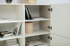 Шкаф Флоу 16.329 выделяется растительным принтом на фасаде, создающими свежий и стильный акцент в интерьере. Металлические ручки и опоры с регулировкой придают конструкции надежность и современный вид. Вместительные отделения, петли с доводчиком и скрытая задняя стенка обеспечивают удобство хранения и аккуратный внешний вид.