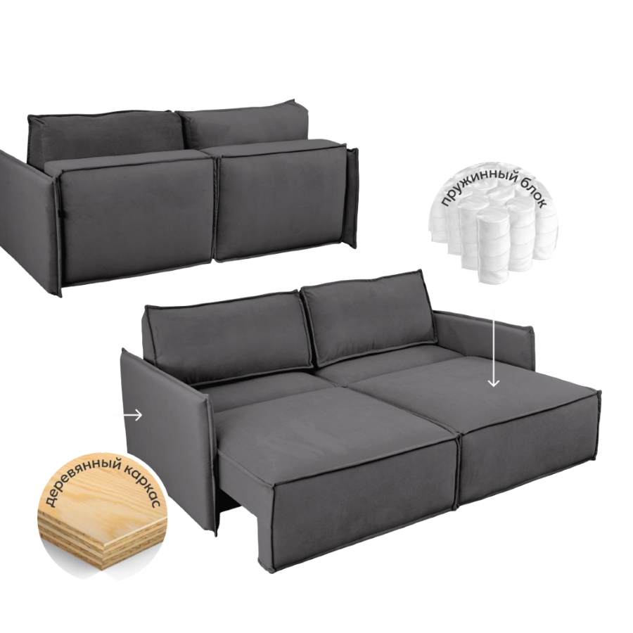 Угловой модульный диван-кровать -- образец стиля минимализм. Каркас дивана состоит из массива сосны и березовой фанеры. Обивка износостойкая с влагоотталкивающей пропиткой и защитой от когтей мелких животных. Механизм «Еврокнижка» трансформирует модель в двуспальную кровать и подходит для ежедневного сна. Основой матраса является блок независимых пружин, расположенный по всей поверхности спального места. Он поможет правильно поддерживать ваше тело во время сна. Преимуществом модели служит наличие двух вместительных ящиков для хранения, один у основного модуля и один у оттоманки. В ящиках установлена светодиодная подсветка.