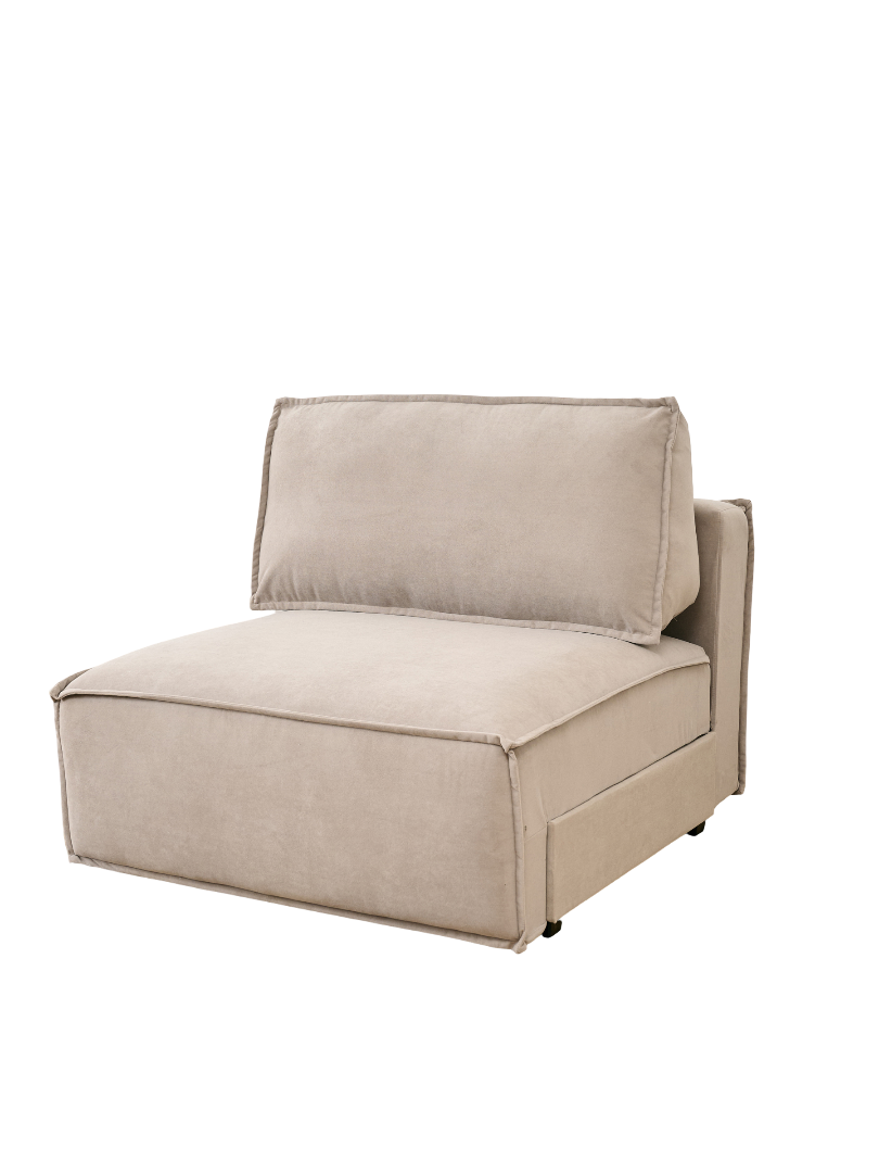 Преимущества модульного дивана в том, что его легко подстроить под ваш запрос и помещение. Модули можно использовать как отдельные диванчики или добавлять в диваны серии 999. Диван легко увеличивается с помощью модулей. Легкая раскладка, блок дивана откатывается без особых усилий. Изделие покрыто велюром со всех сторон, мы не используем подменную ткань, что позволит вам использовать диван для зонирования помещения. Имеется вместительный ящик для белья.