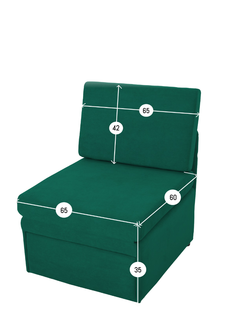 Кресло обладает габаритами: ширина 77 см, глубина 66 см, высота 89 см, что позволяет разместить его в любой комнате, включая гостиную, спальню или детскую. Преимущества и особенности выдвижного механизма трансформации в том, что он позволяет легко и быстро превратить кресло в удобную кровать.