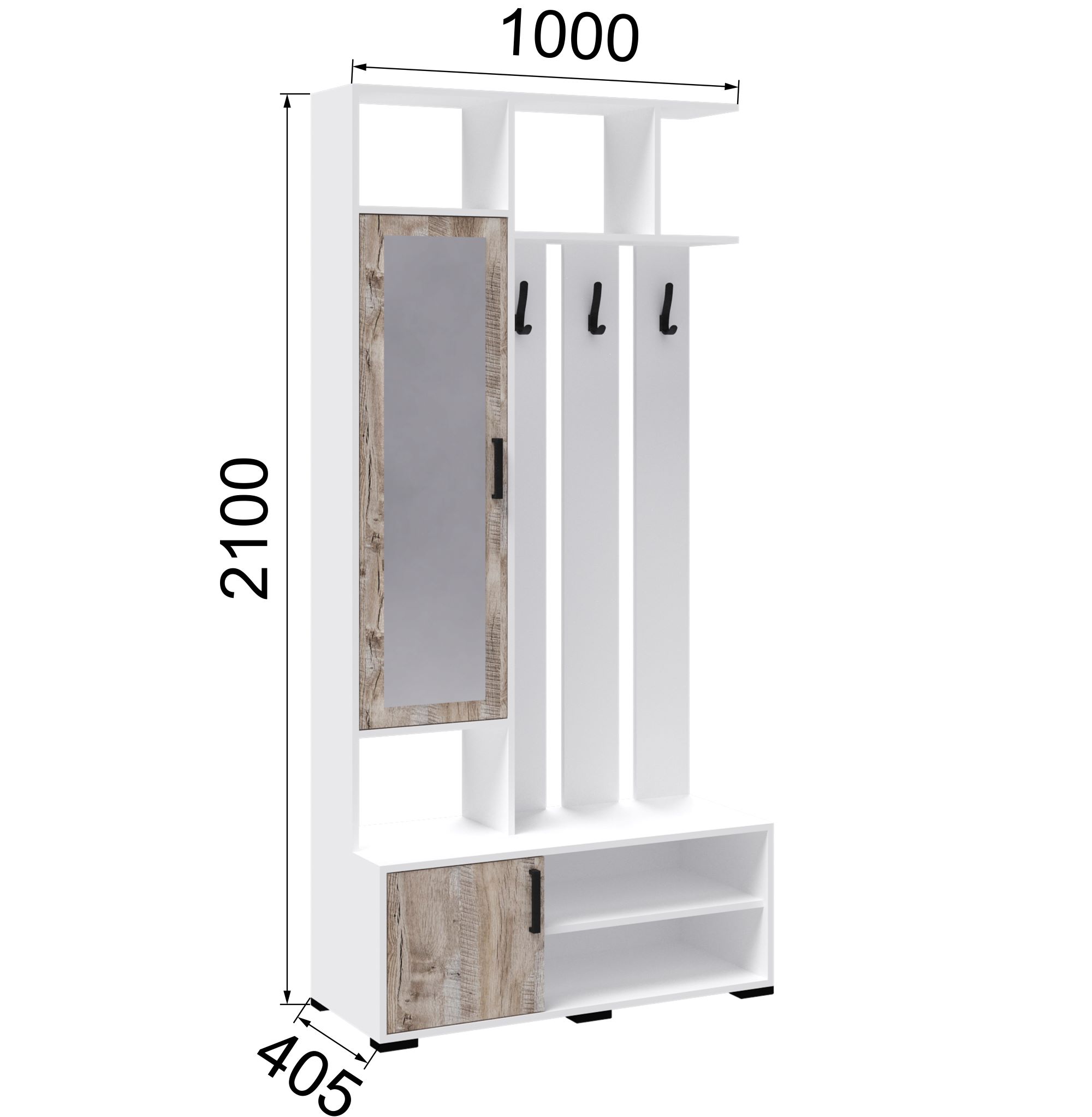 Секция с вешалкой с зеркалом и тумбой из модульной программы "Бриз" имеет компактные размеры 2100*1000*405мм.