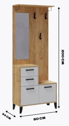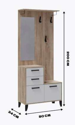 Секция может служить самостоятельной частью прихожей, но также и может быть дополнена 2х дверным шкафом.