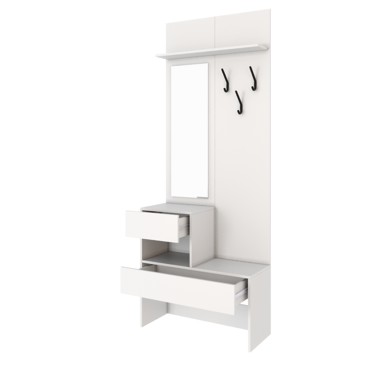 Прихожая выполнена полностью в белом цвете, что придает ей элегантный и современный вид.