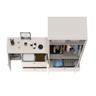 Комод Афина 4-44901 оснащен дверкой и 3 выдвижными ящиками - достаточно места для хранения одежды и аксессуаров. Комод установлен на опоры высотой 16 см. Универсальная сборка позволяет расположить дверку и ящики в любом удобном порядке.