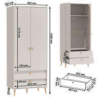 Габариты шкафа 2х-дверного (ШхГхВ): 90,3х56,3х220 см.