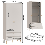 Габариты шкафа 2х-дверного (ШхГхВ): 90,3х56,3х220 см (2 ед. в комплекте).
