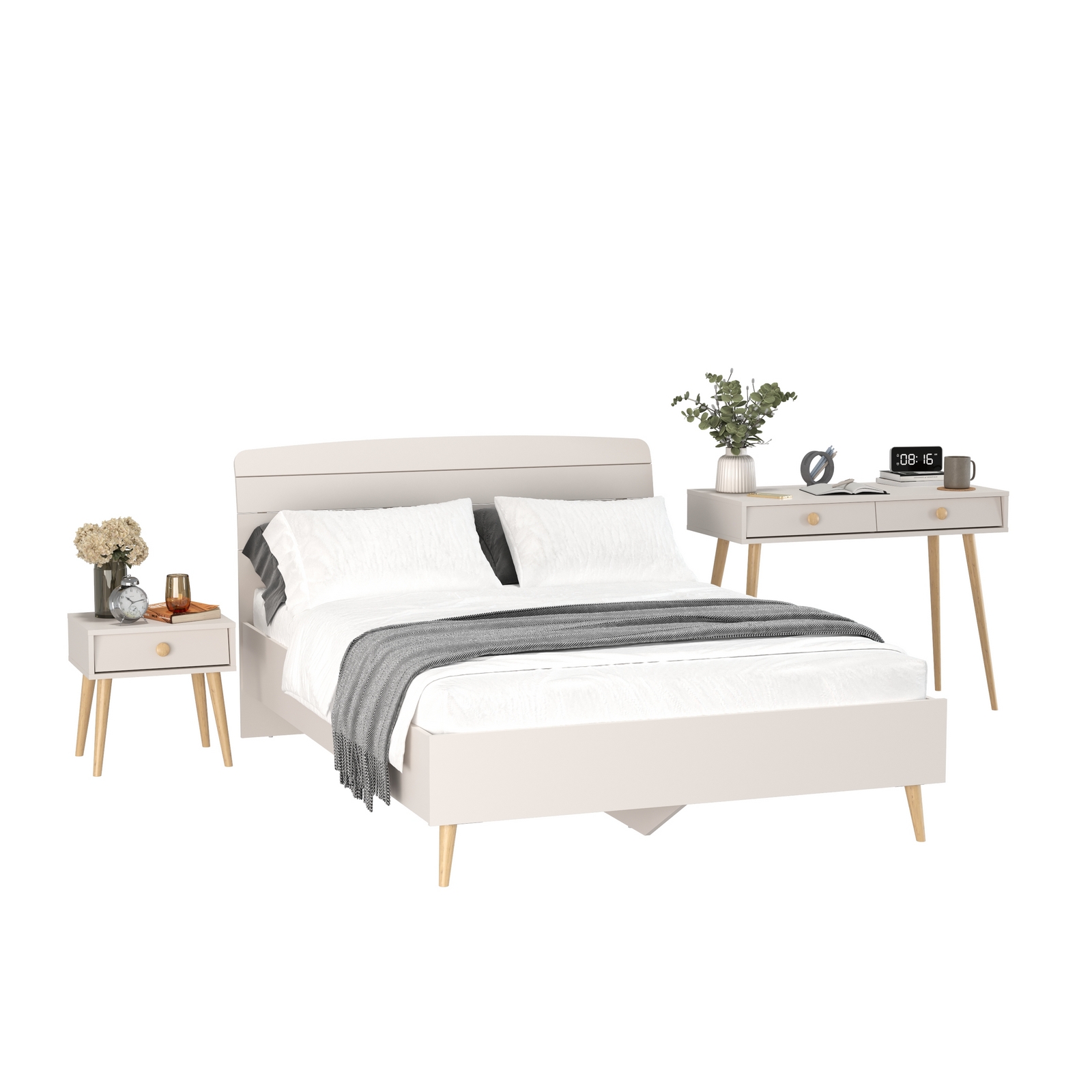 Кровать двуспальная Афина 1400 с прикроватной тумбочкой и столом с ящиками – стильный комплект, сочетающий комфорт и практичность! Теплый цвет кашемир серый добавляет интерьеру уют и гармонию, прекрасно дополняя современный декор спальни.