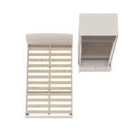 Деревянные ручки круглой формы, выполненные в цвете бук. Модули установлены на высокие опоры из массива бука в цвете Тик, которые добавляют лёгкости конструкции и делают её удобной для уборки. Ящики на шариковых направляющих полного выдвижения. Поставляется в разобранном виде.