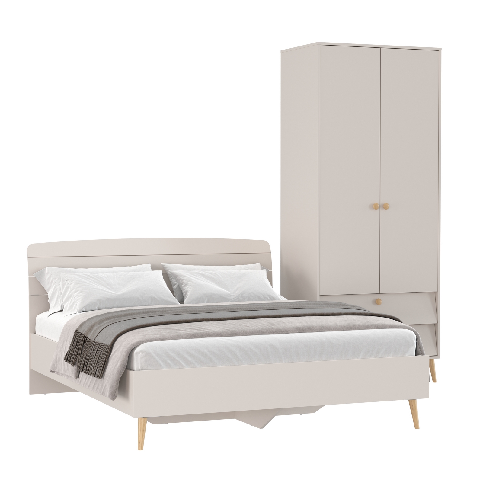 Афина двухспальная кровать 1600 с 2-х дверным шкафом-комодом – просторный комплект для комфортной спальни. Теплый цвет кашемир серый добавляет интерьеру уют и гармонию, прекрасно дополняя современный декор спальни.