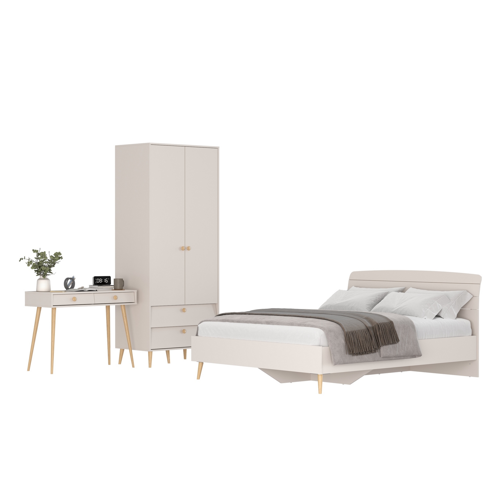 Столик с кроватью на 1600 Афина и шкаф-комодом двухдверным – изящное воплощение минимализма и утонченного стиля! Теплый цвет кашемир серый добавляет интерьеру уют и гармонию, прекрасно дополняя современный декор спальни.