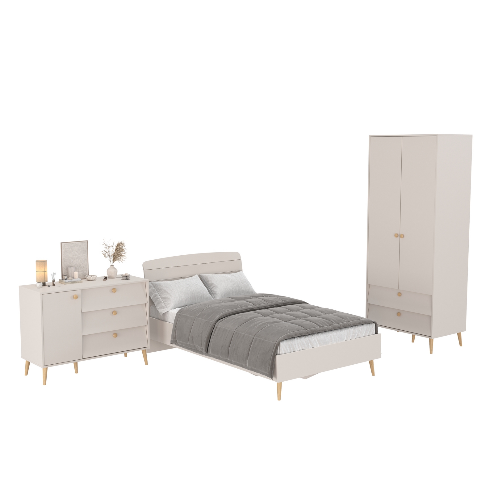 Афина кровать 1200 с комодом и 2-х дверным шкафом для одежды — изящное воплощение минимализма и утонченного стиля! Теплый цвет кашемир серый добавляет интерьеру уют и гармонию, прекрасно дополняя современный декор спальни.