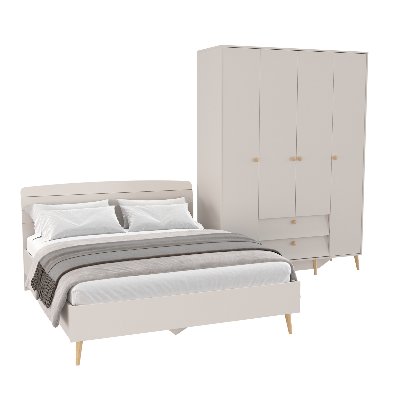 Набор мебели Афина из кровати двуспальной 1600 и шкафа 4-х дверного для одежды — изящное воплощение минимализма и утонченного стиля! Теплый цвет кашемир серый добавляет интерьеру уют и гармонию, прекрасно дополняя современный декор спальни.