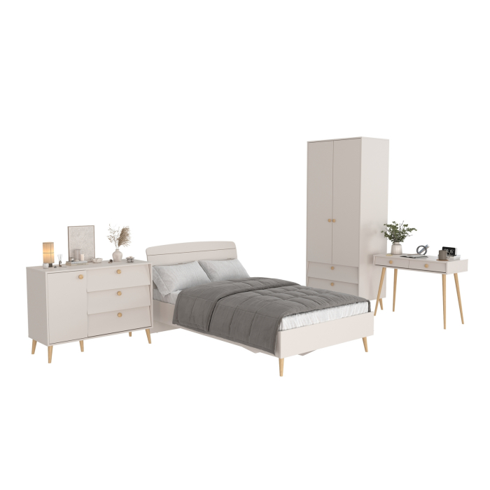 Комплектация включает кровать 1200 Афина 4-22905, туалетный столик Афина 4-25904, комод с дверкой и тремя ящиками Афина 4-44901 и шкаф 2-х дверный Афина 4-75901.