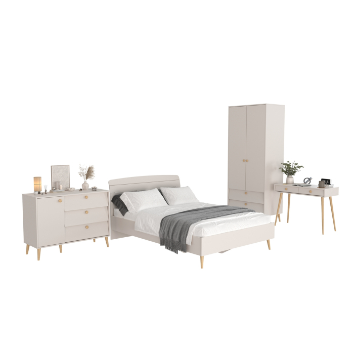 Комплектация включает кровать 1400 Афина 4-22911, туалетный столик Афина 4-25904, комод с дверкой и тремя ящиками Афина 4-44901 и шкаф 2-х дверный Афина 4-75901.