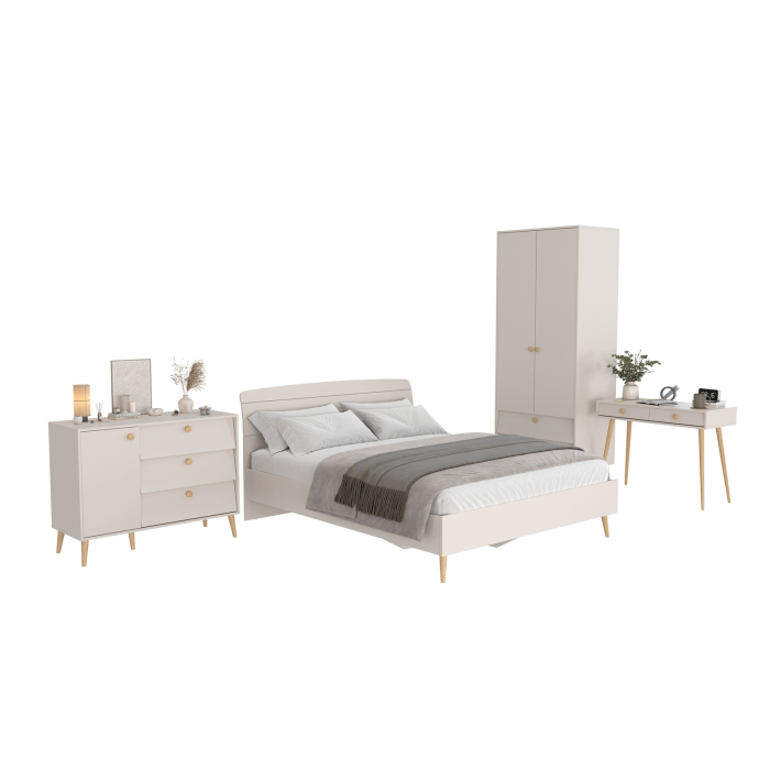 Комплектация включает кровать 1600 Афина 4-22901, туалетный столик Афина 4-25904, комод с дверкой и тремя ящиками Афина 4-44901 и шкаф 2-х дверный Афина 4-75901.