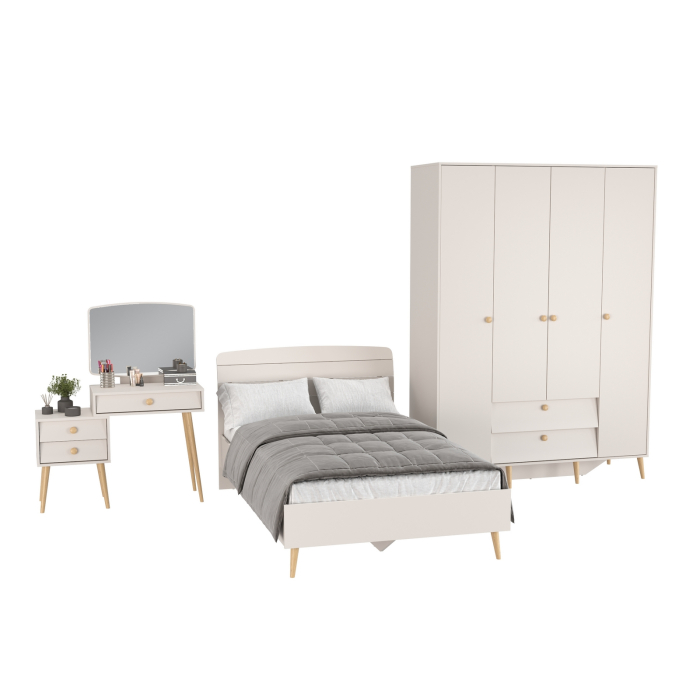 Комплектация включает кровать 1200 Афина 4-22905, трюмо с зеркалом Афина 4-25901 и шкаф 4-х дверный Афина 4-75930.