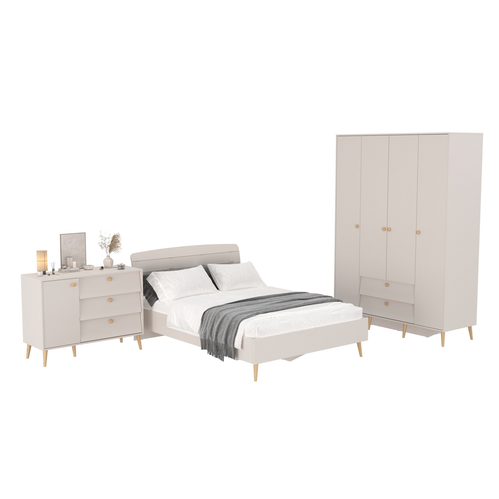 Шкаф-комод 4-х дверный с кроватью 1400 Афина и комодом с дверкой – удобное и стильное решение для спальни. Теплый цвет кашемир серый добавляет интерьеру уют и гармонию, прекрасно дополняя современный декор спальни.