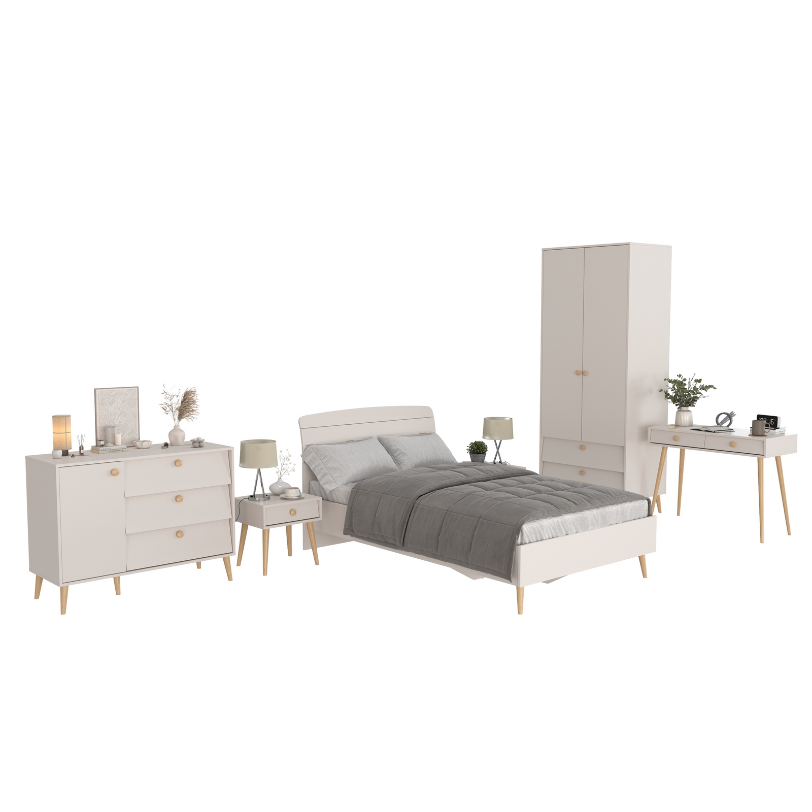 Комплектация включает кровать 1200 Афина 4-22905, две тумбы прикроватные Афина 4-09901, туалетный столик Афина 4-25904, комод с дверкой и тремя ящиками Афина 4-44901 и шкаф 2-х дверный Афина 4-75901.