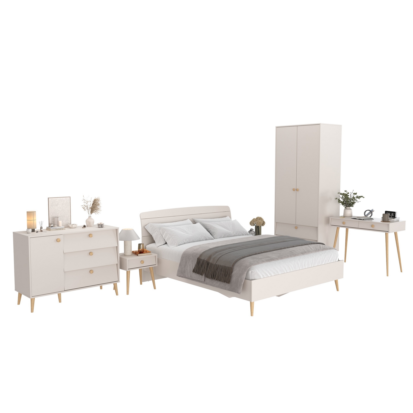 Комплектация включает кровать 1600 Афина 4-22901, две тумбы прикроватные Афина 4-09901, туалетный столик Афина 4-25904, комод с дверкой и тремя ящиками Афина 4-44901 и шкаф 2-х дверный Афина 4-75901.