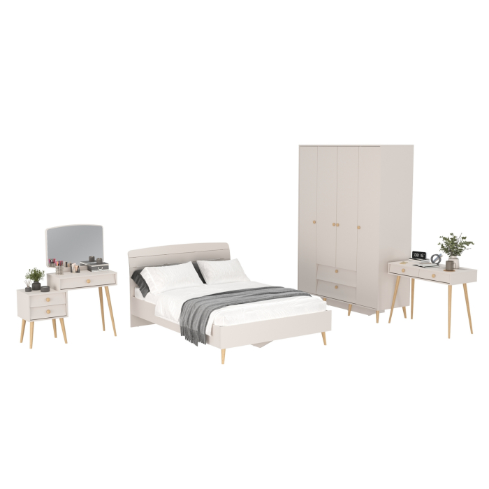 Комплектация включает кровать 1400 Афина 4-22911, туалетный столик Афина 4-25904, трюмо с зеркалом Афина 4-25901 и шкаф 4-х дверный Афина 4-75930.