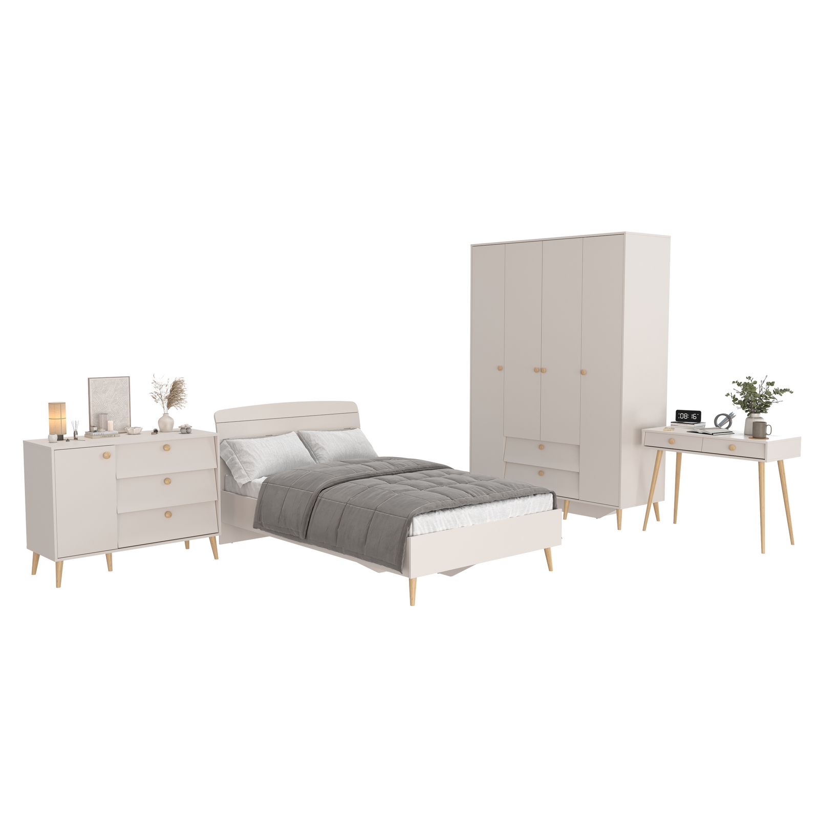 Комплектация включает кровать 1200 Афина 4-22905, туалетный столик Афина 4-25904, комод с дверкой и тремя ящиками Афина 4-44901 и шкаф 4-х дверный Афина 4-75930.
