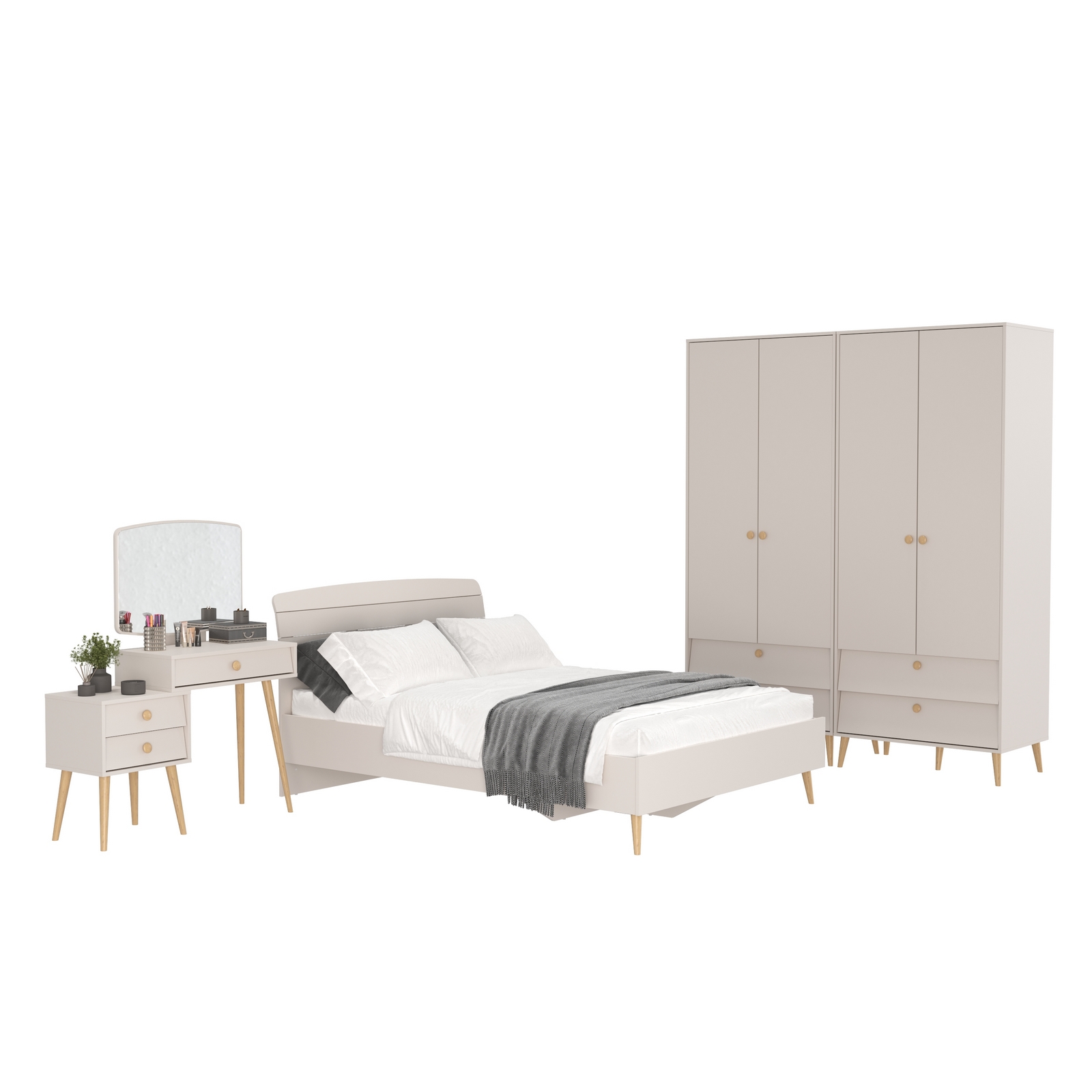 Два двухдверных шкафа Афина с туалетным столиком и кроватью 1400 – удобное и стильное решение для спальни. Теплый цвет кашемир серый добавляет интерьеру уют и гармонию, прекрасно дополняя современный декор спальни.