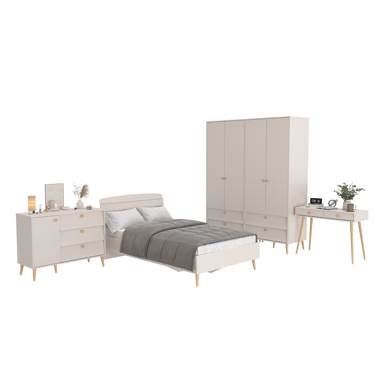 Комплектация включает кровать 1200 Афина 4-22905, туалетный столик Афина 4-25904, комод с дверкой и тремя ящиками Афина 4-44901 и два шкафа 2-х дверных Афина 4-75901.