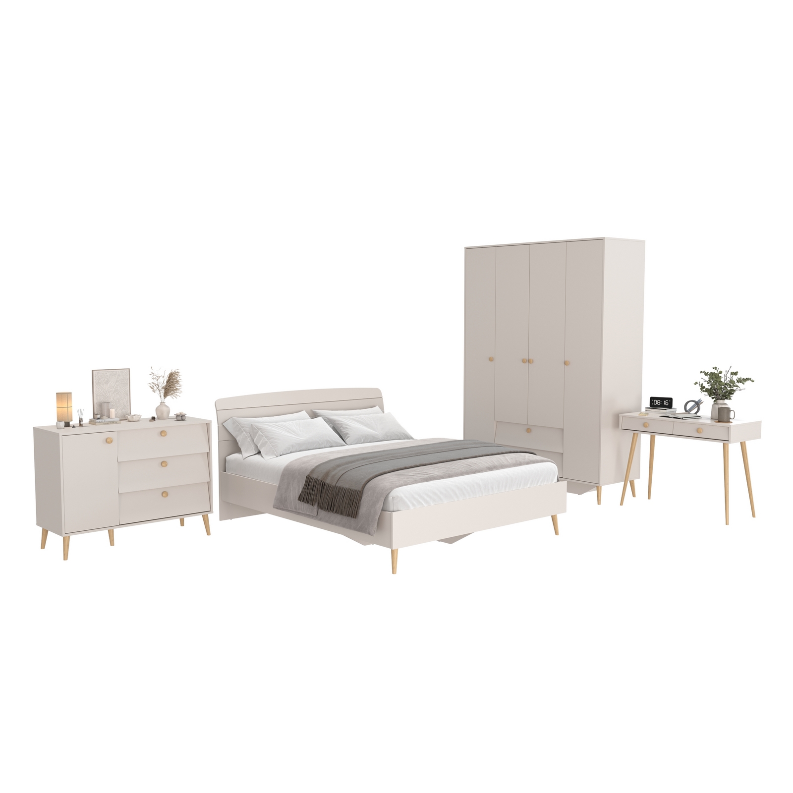 Комплектация включает кровать 1600 Афина 4-22901, туалетный столик Афина 4-25904, комод с дверкой и тремя ящиками Афина 4-44901 и шкаф 4-х дверный Афина 4-75930.