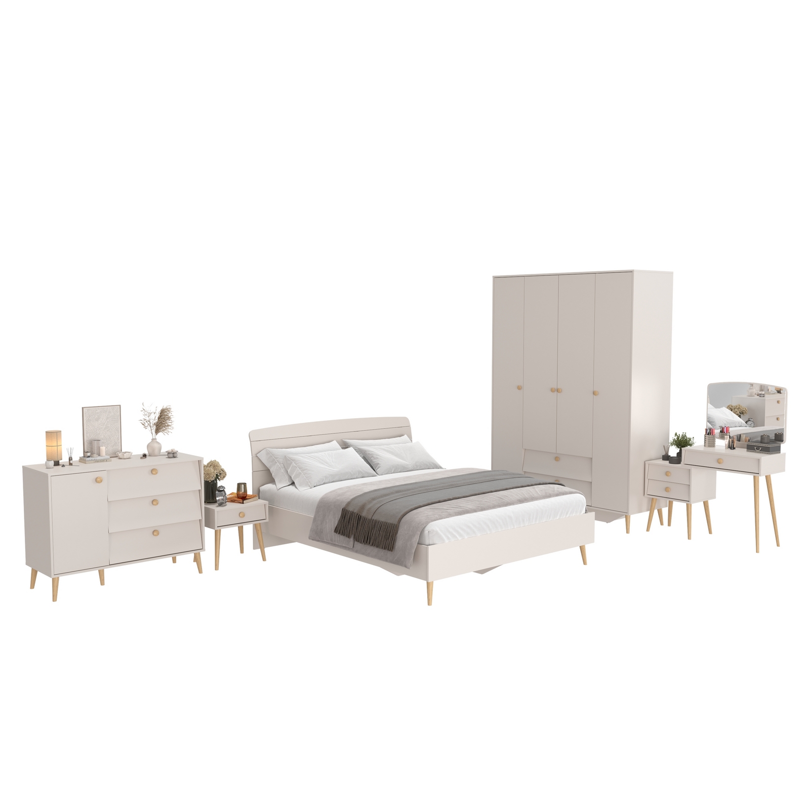 Комплектация включает кровать 1600 Афина 4-22901, тумбу прикроватную Афина 4-09901, трюмо с зеркалом Афина 4-25901, комод с дверкой и тремя ящиками Афина 4-44901 и шкаф 4-х дверный Афина 4-75930.