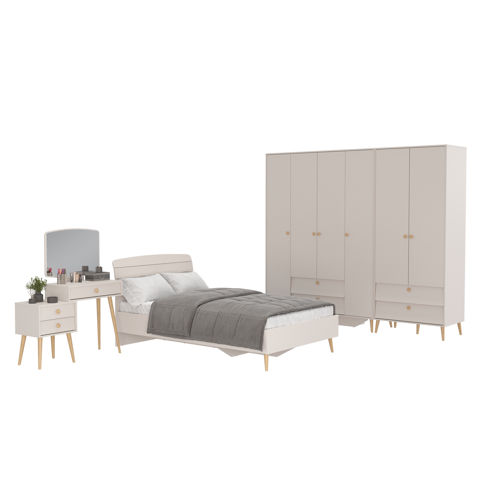 Комплектация включает кровать 1200 Афина 4-22905, трюмо с зеркалом Афина 4-25901, шкаф 2-х дверный Афина 4-75901 и шкаф 4-х дверный Афина 4-75930.