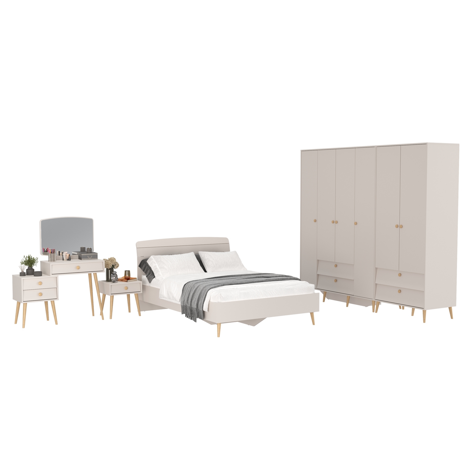Комплектация включает кровать 1400 Афина 4-22911, тумбу прикроватную Афина 4-09901, трюмо с зеркалом Афина 4-25901, шкаф 2-х дверный Афина 4-75901 и шкаф 4-х дверный Афина 4-75930.