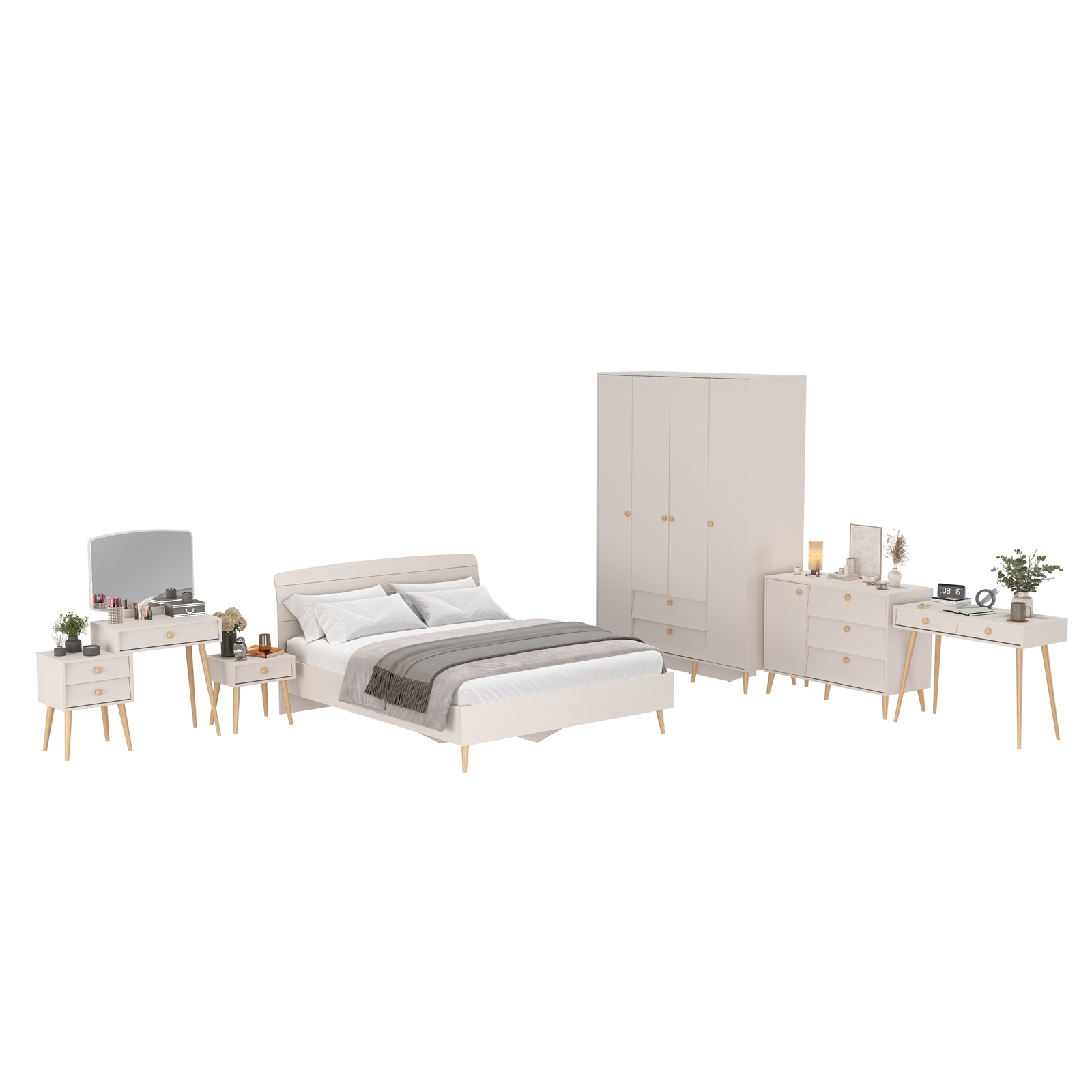 Комплектация включает кровать 1600 Афина 4-22901, тумбу прикроватную Афина 4-09901, туалетный столик Афина 4-25904, трюмо с зеркалом Афина 4-25901, омод с дверкой и тремя ящиками Афина 4-44901 и шкаф 4-х дверный Афина 4-75930.