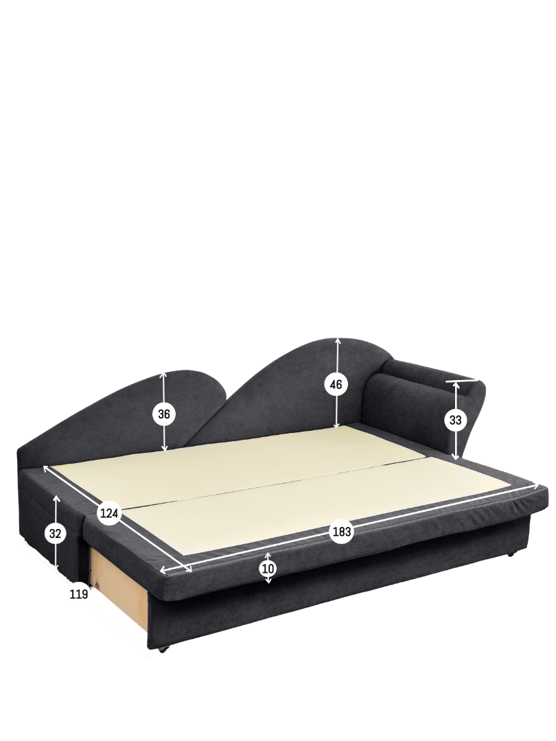 Угловой диван-кровать модель 212 от мебельной фабрики Brendoss — это удачное сочетание стиля ар-деко и функциональности. Его уникальный дизайн, напоминающий тахту, с твёрдой спинкой и мягким подлокотником привносит в интерьер утончённость и комфорт. Диван идеально впишется как в просторные гостиные, так и в компактные помещения, такие как кухня или детская комната. В сложенном виде его размеры составляют 209x66x78 см, а спальное место имеет параметры 124x183 см. Одна из половин спального места более жёсткая, что добавляет удобства для тех, кто предпочитает твёрдую поверхность. Механизм трансформации «еврософа» позволяет легко и быстро разложить диван, превращая его в полноценное спальное место. Под сиденьем расположен вместительный ящик для хранения белья с подсветкой, что делает его особенно удобным для использования в тёмное время суток. Габариты ящика — 172x60x23 см. Диван изготовлен на прочном каркасе из березовой фанеры и бруса, что обеспечивает его надёжность при максимальной нагрузке до 300 кг. Наполнитель из плотного ППУ толщиной 90, 40, 20 и 10 мм обеспечивает оптимальную поддержку и долговечность. Обивка выполнена из водоотталкивающего велюра, устойчивого к когтям мелких животных, гипоаллергенного и лёгкого в уходе. Материал дышащий, что создаёт комфорт в любое время года. Модель доступна с правой или левой ориентацией угла, позволяя выбрать наиболее удобный вариант для вашего пространства. В комплекте также идут две декоративные подушки, добавляющие дополнительный уют. Подлокотник и спинка требуют самостоятельной установки, что легко выполнимо с помощью прилагаемой инструкции. Диван 212 станет прекрасным выбором для любого помещения, сочетая комфорт, стиль и практичность в одном предмете мебели.